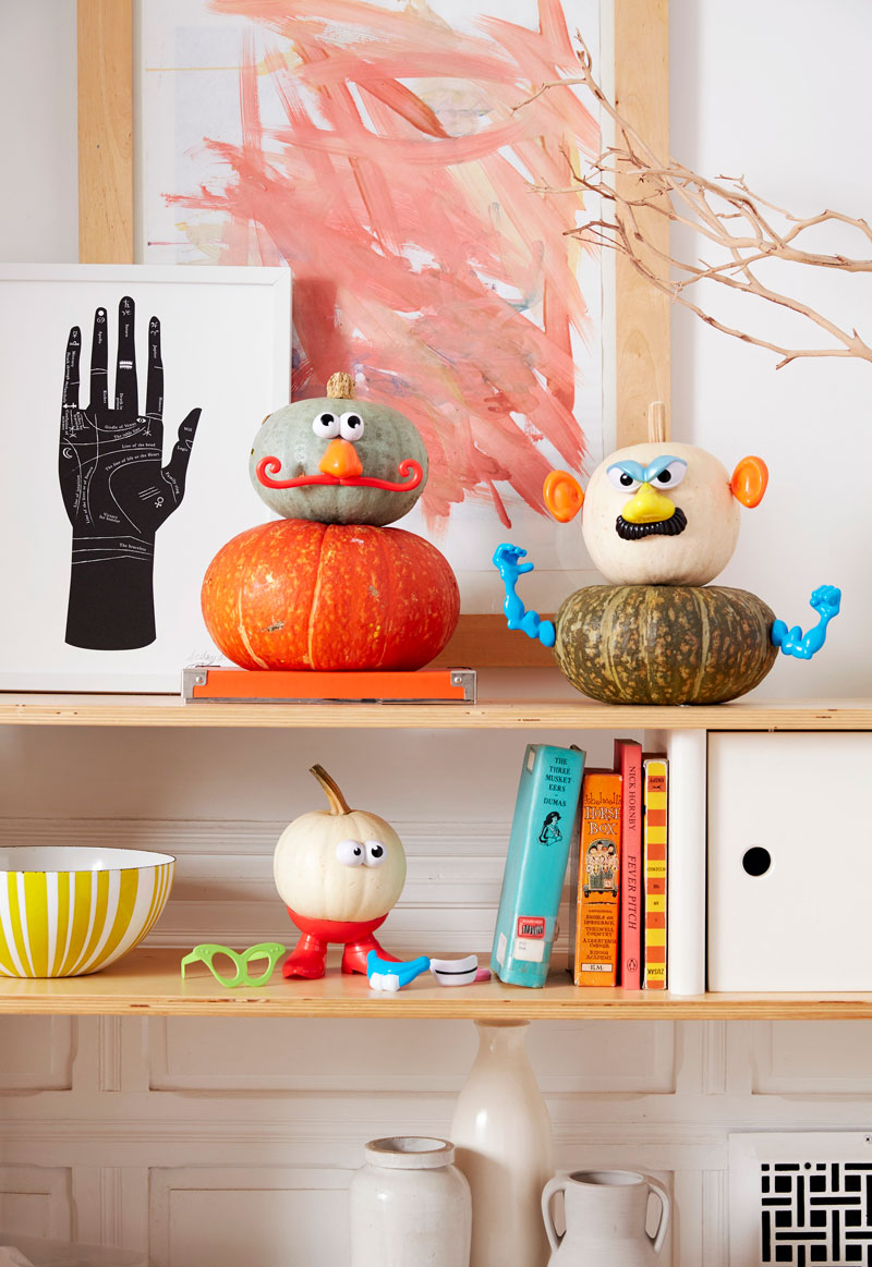 Look for unusual pumpkins and gourds to give your creation even more character. Then, simply push the Mr. Potato Head parts into the flesh.